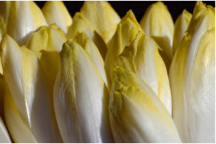 Snij de kontjes van de witlof en verwijder met een scherp mesje de wigvormige bittere