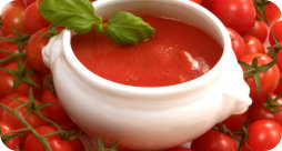 Tip: Leg in elke kom soep een ijsklontje met een basilicumblaadje erin om het koele karakter te