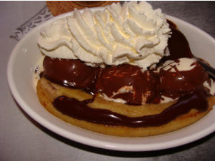 banana split wil met warme chocolade saus, en dan maken we dat.